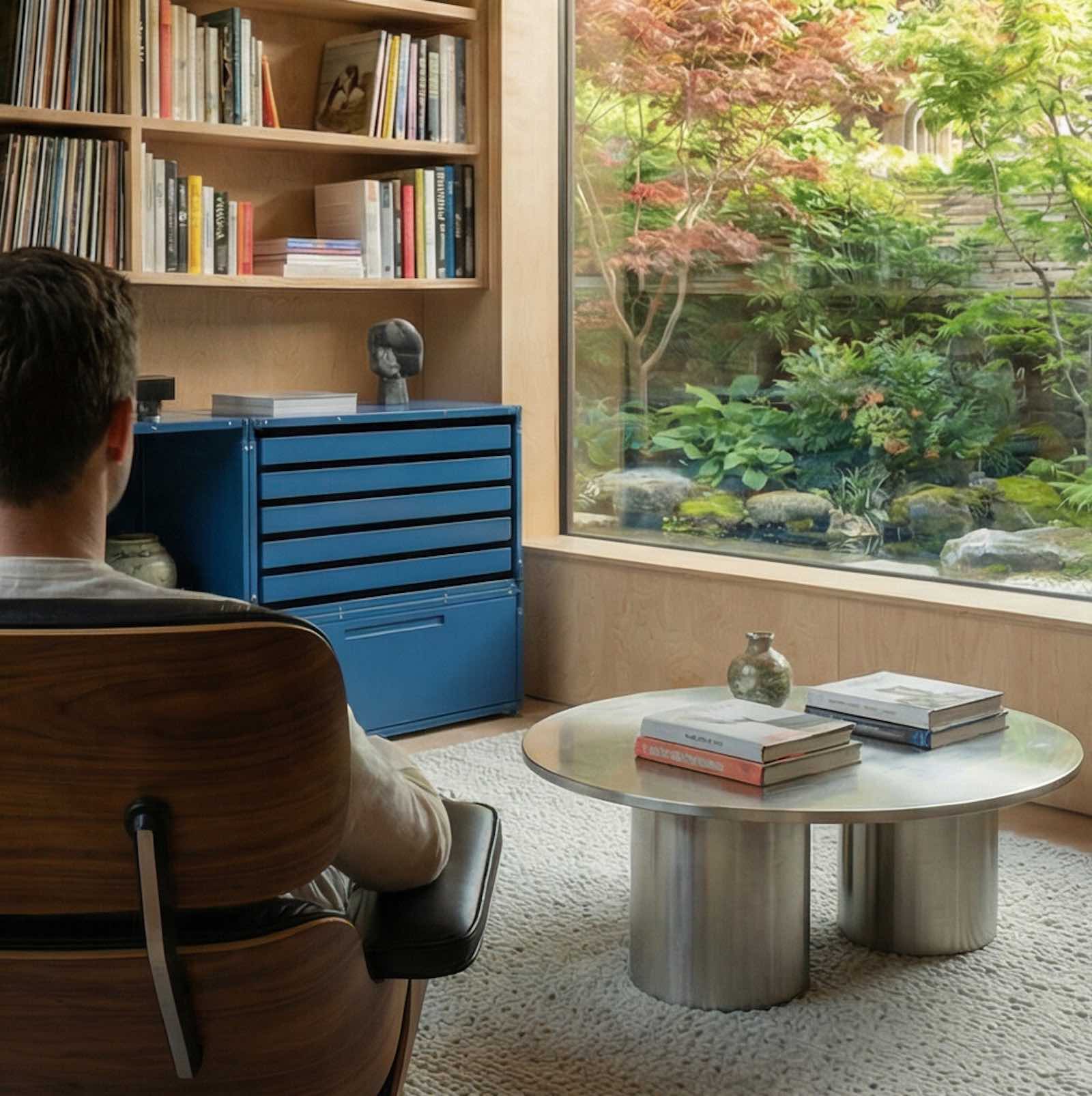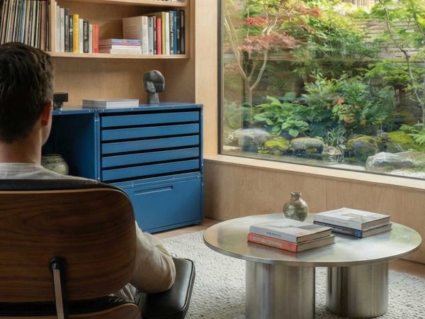 Ten unikalny system regałów składa się z niezależnych, precyzyjnie wykonanych modułów, które można ze sobą skręcać, tworząc spersonalizowane konfiguracje. Konstrukcja wykonana jest z lekkiego i trwałego aluminium, które zapewnia stabilność, odporność na zużycie oraz długowieczność mebla.